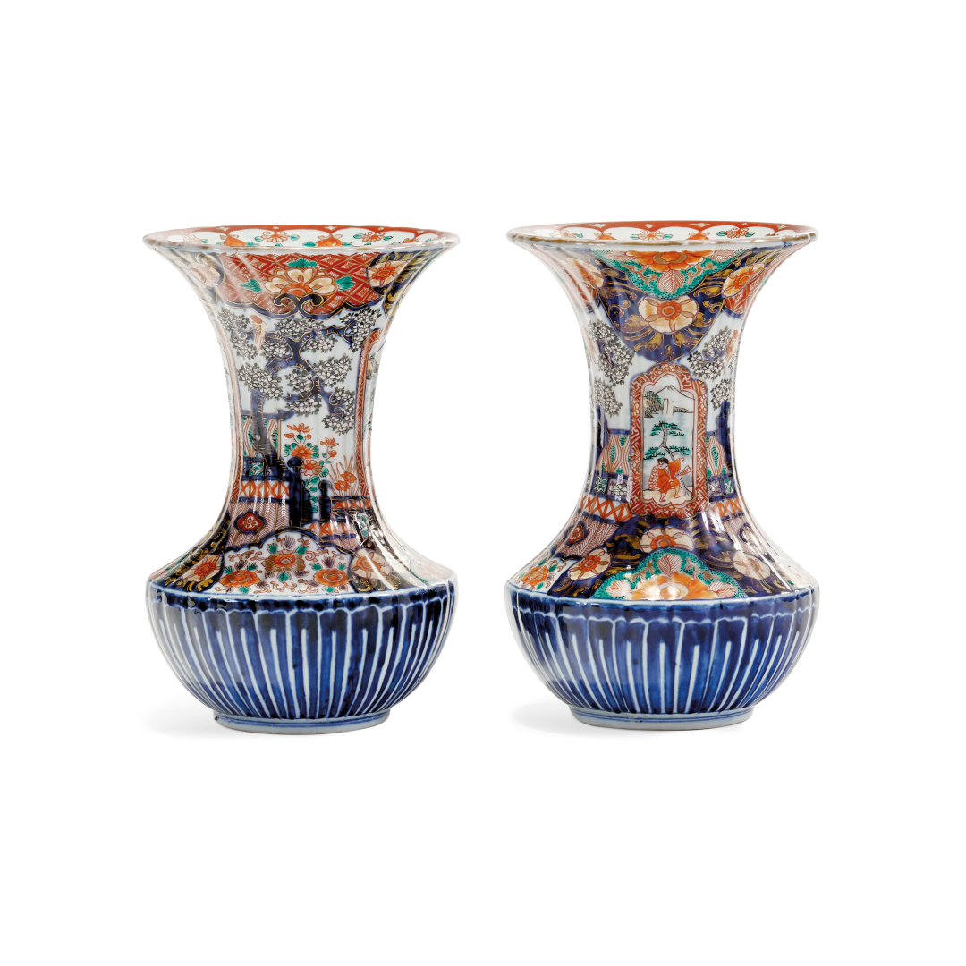 Porcellana dipinta a smalti policromi di tipo ‘Imari’, l’esterno modellato in sgusci verticali con una esuberante decorazione di motivi floreali e riserve polilobate con figure.