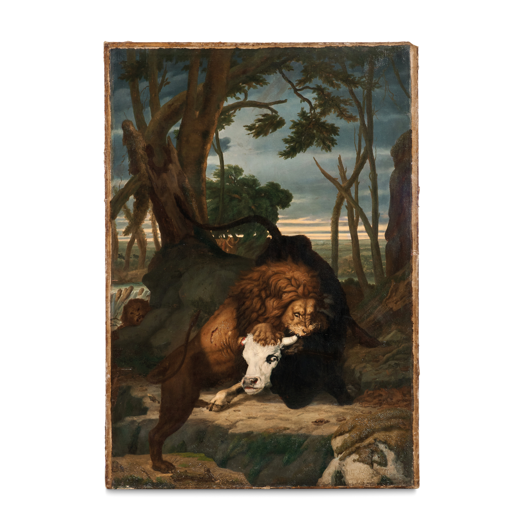 SCUOLA FRANCESE DEL XVIII SECOLO Combattimento tra toro e leone