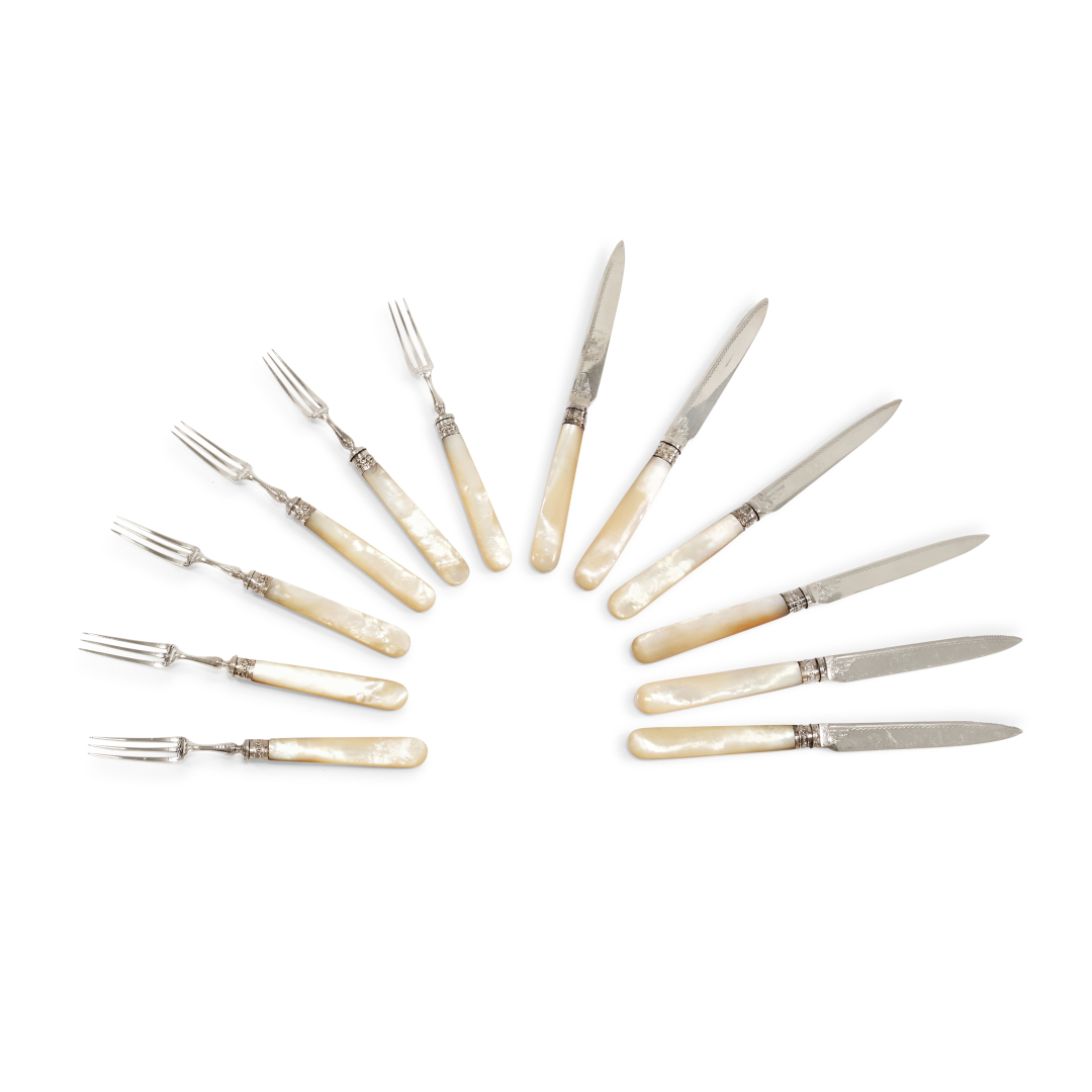 SERVIZIO DI POSATE DA FRUTTA IN ARGENTO E MADREPERLA Sheffield, 1987-1988