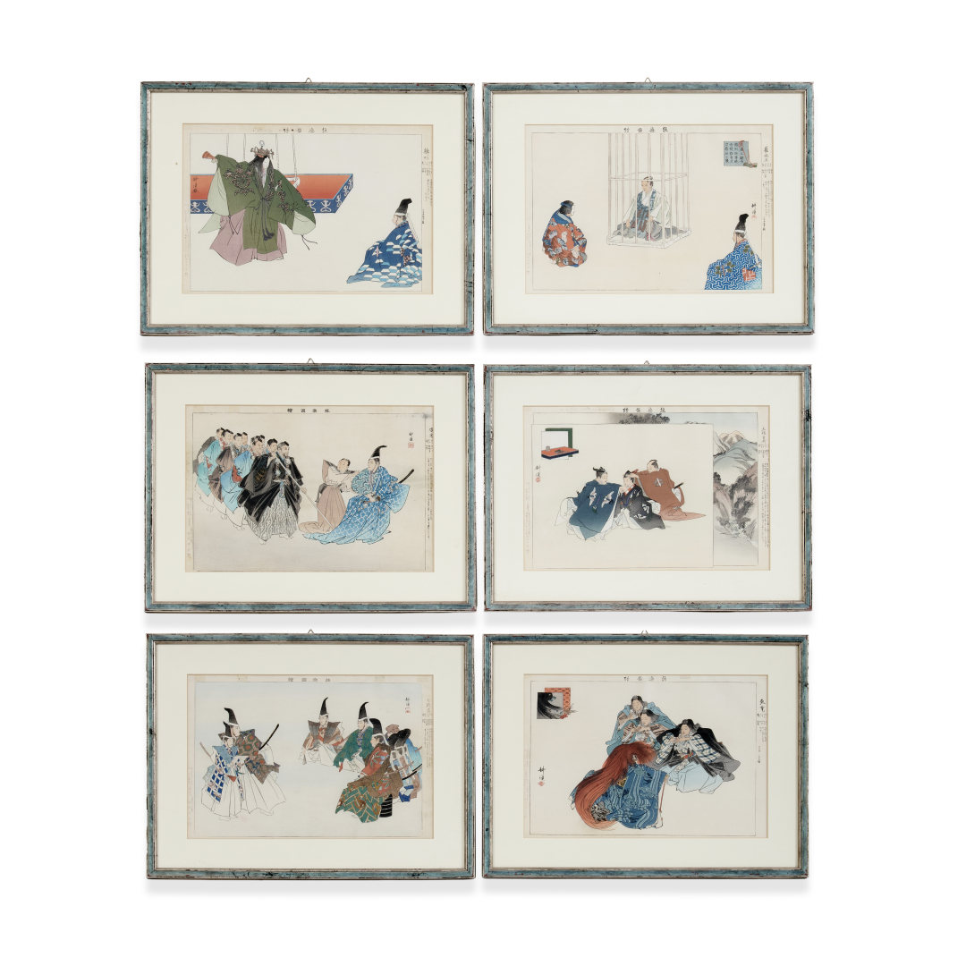 TSUKIOKA KOGYO 1869-1927 Gruppo di sei xilografie con scene dal teatro No 1900 circa