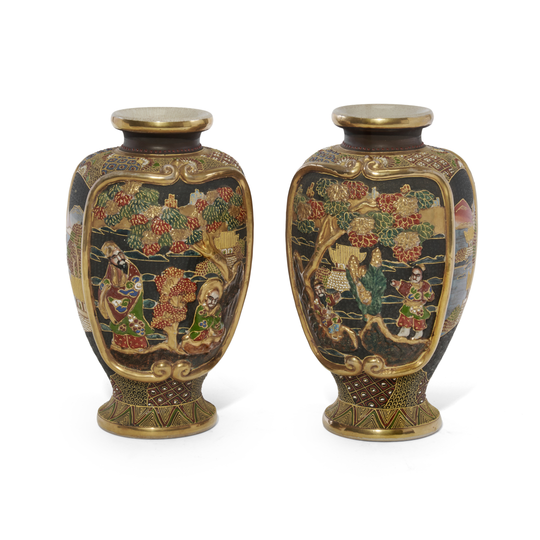 Ceramica di tipo Satsuma dipinta a smalti policromi e oro, sul corpo composizioni con figure nel paesaggio, racchiuse entro riserve con profili in accentuato rilievo.