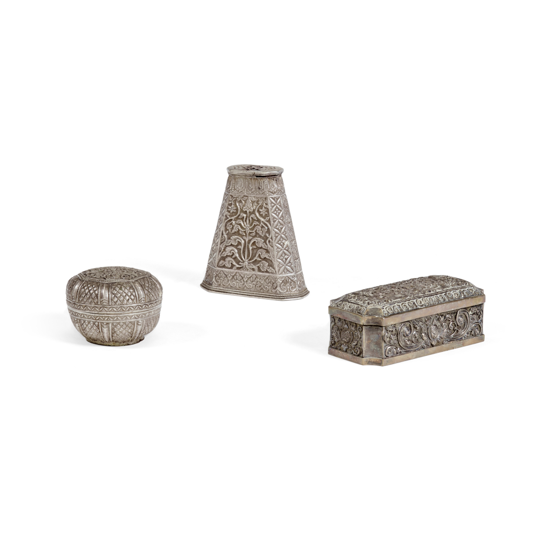 GRUPPO DI TRE SCATOLE, DUE CON COPERCHIO Sud-est asiatico, inizio XX secolo