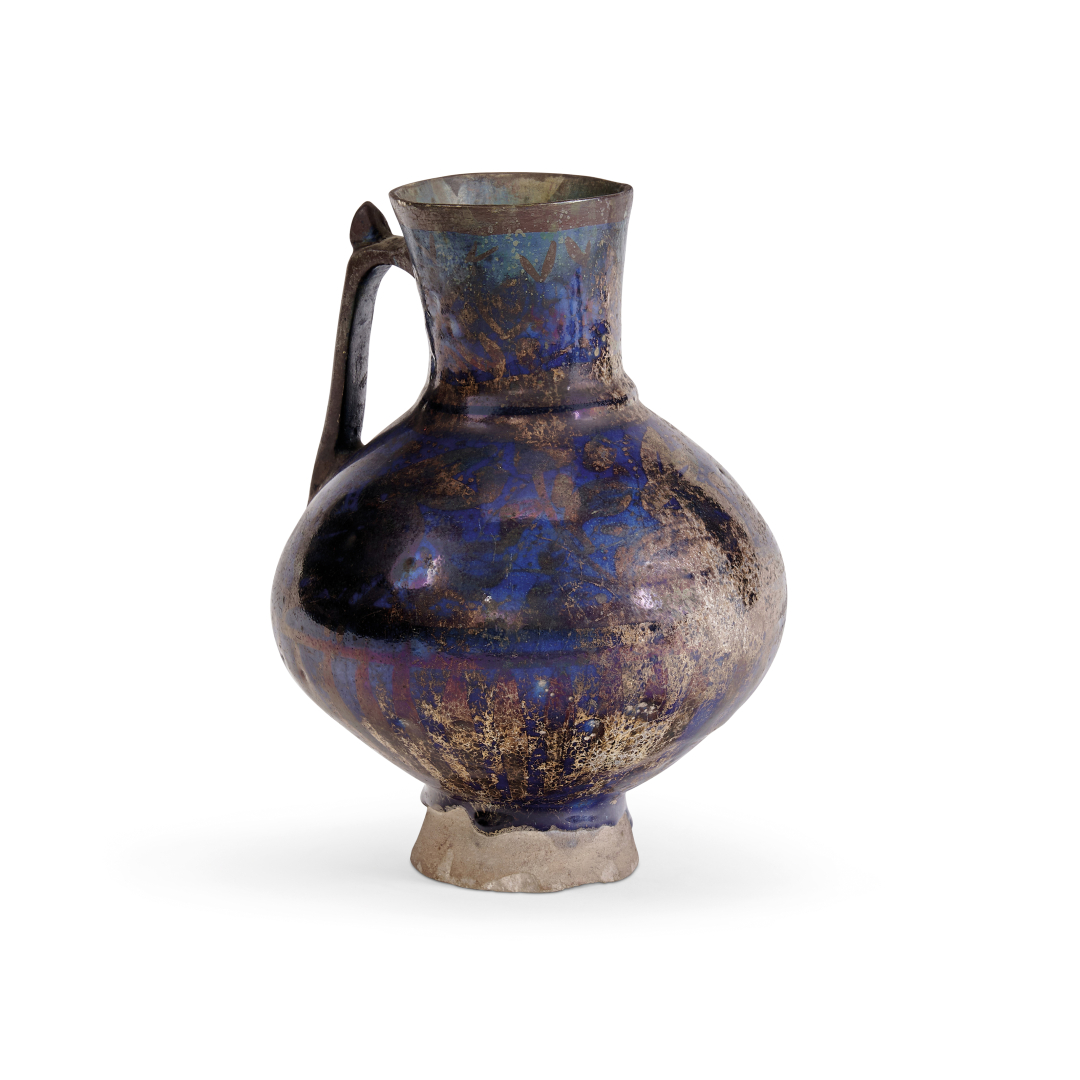 Ceramica con invetriatura blu, presa tra bocca e spalla.