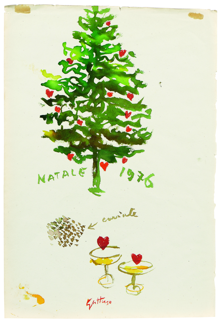 Lotto completato da: Natale 1976, acquerello su carta, 30.5 x 21,00 cm., titolata al centro e firmata al recto in basso al centro.