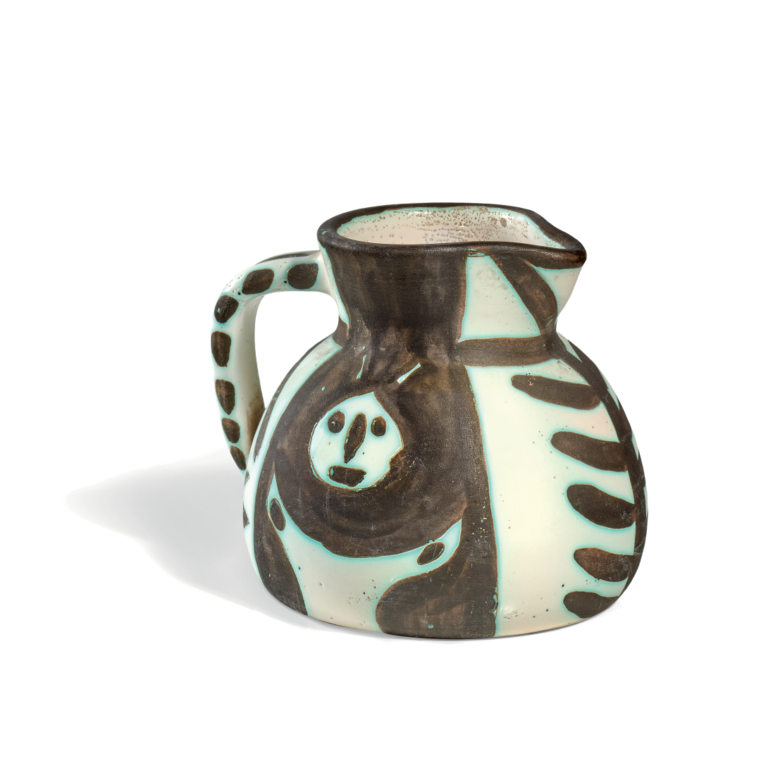 Brocca in ceramica bianca con ossido nero e smalto bianco, ed.158/300.