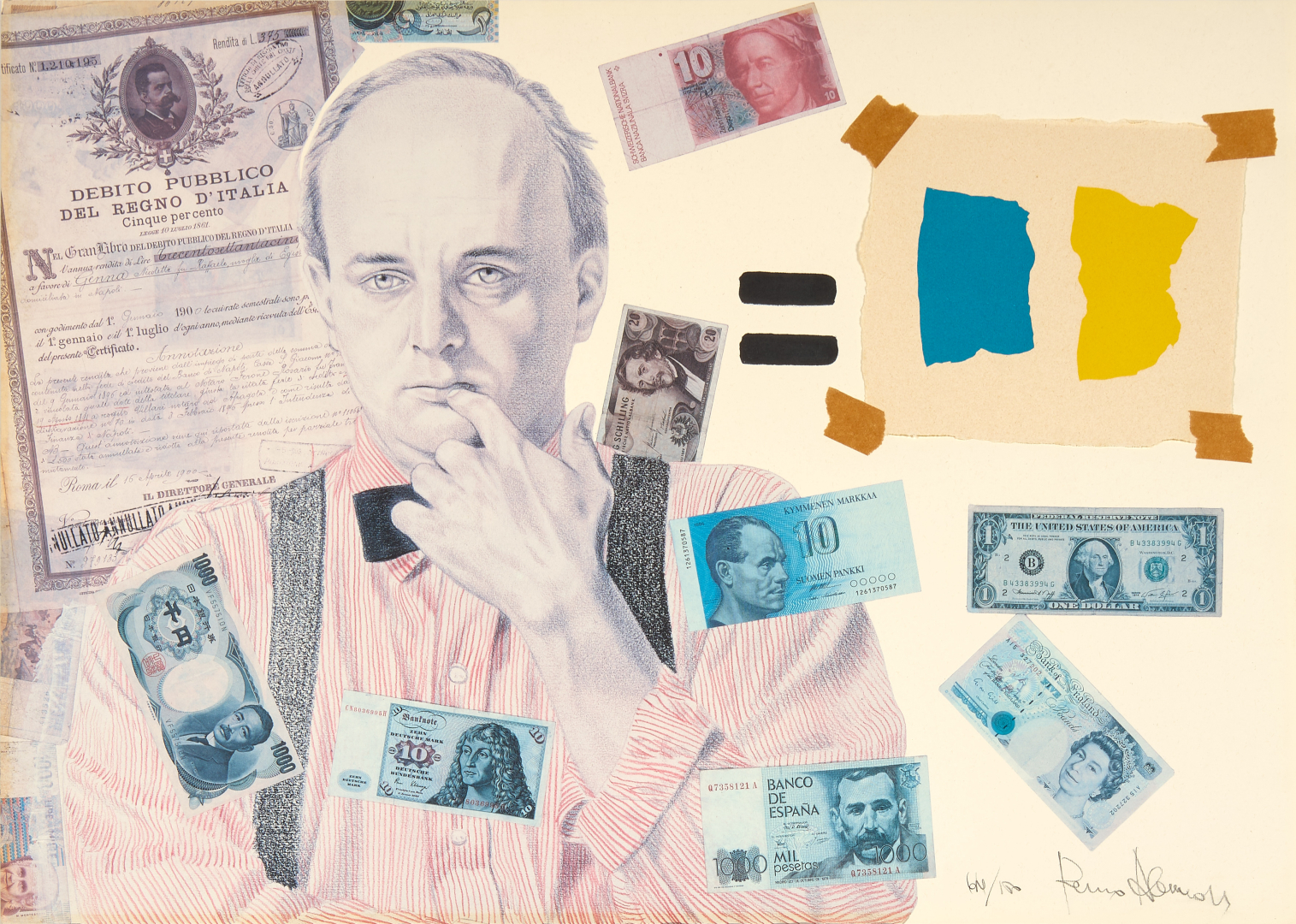 Lotto completato da: Debito pubblico del Regno d'Italia, litografia a colori, ed. 64/180, 48,00 x 66,00 cm, firmato e numerato al recto in basso a destra.