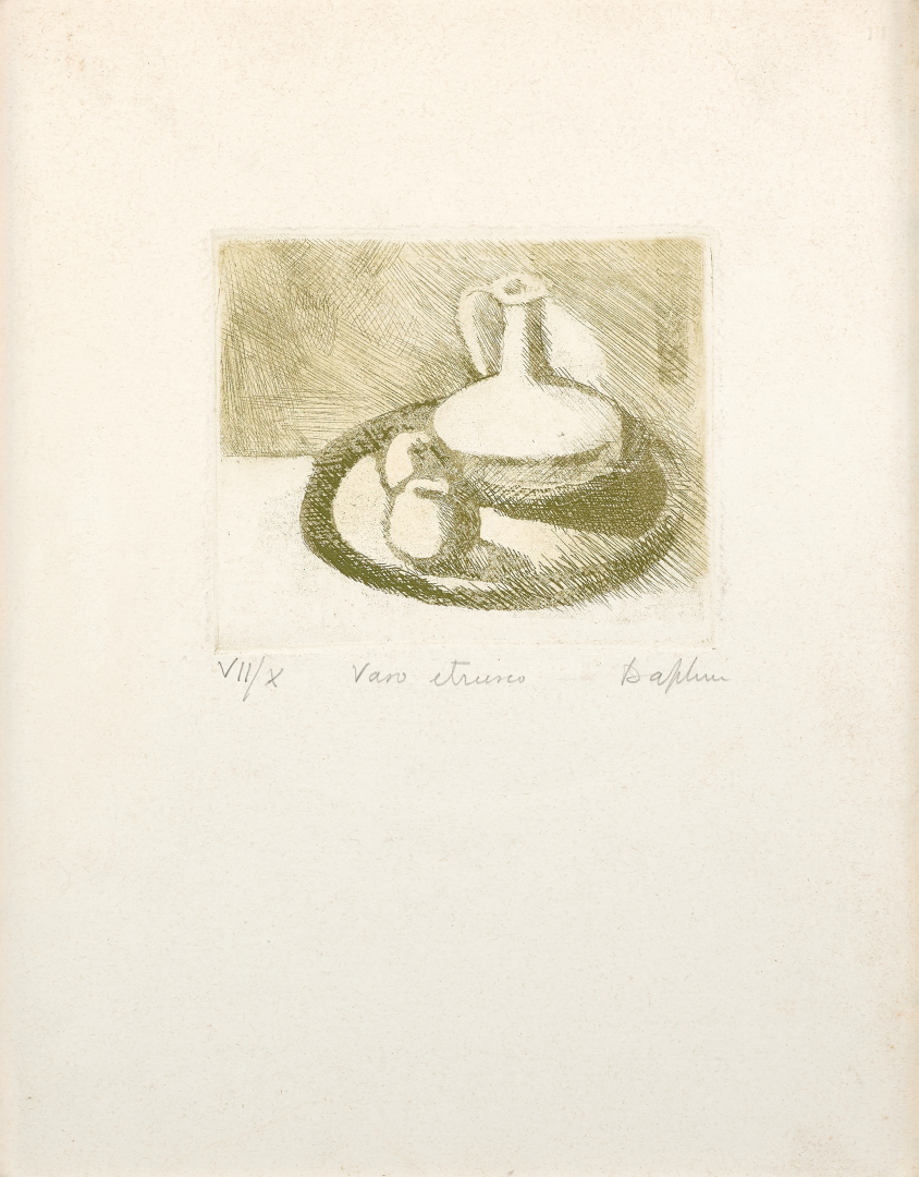 AUTORI VARI Lotto di due incisioni: Daphne Casorati Maugham Vaso etrusco
