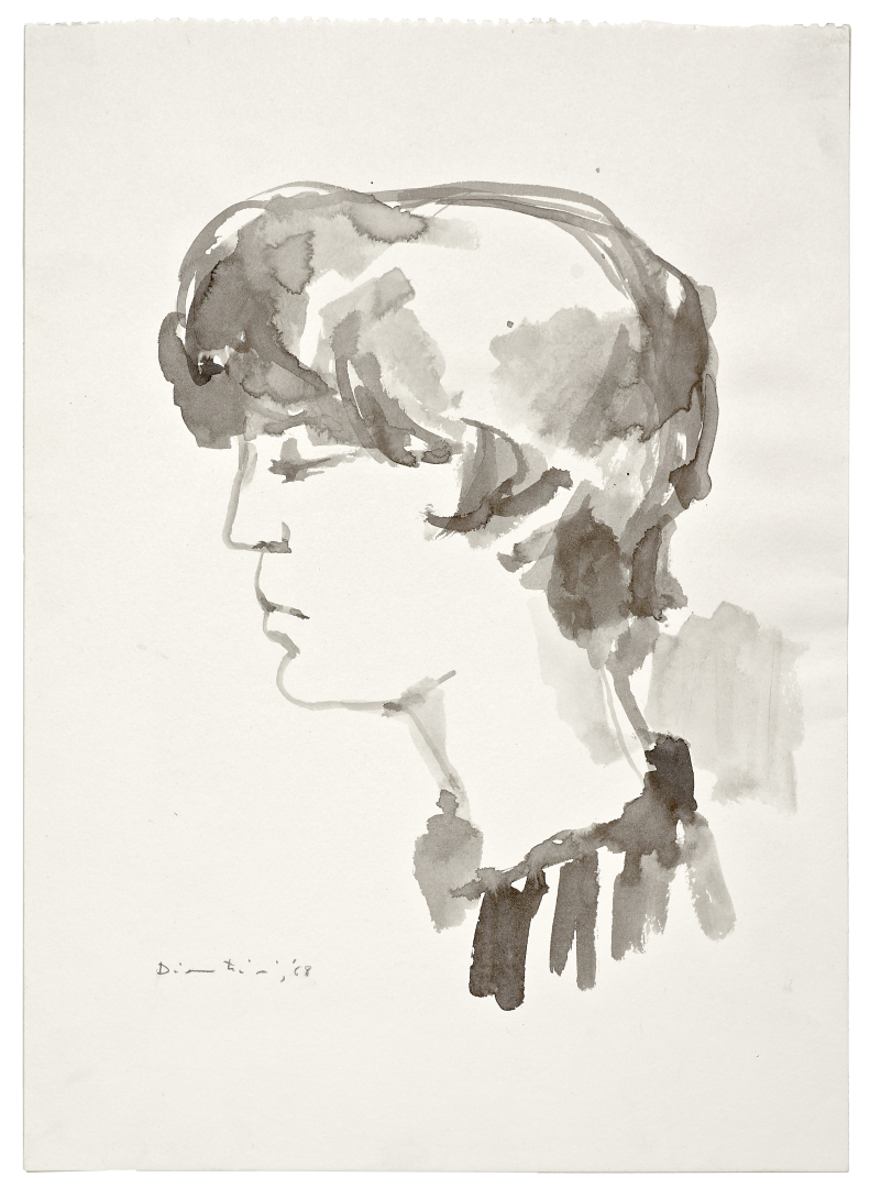 Assieme: Fiorella Diamantini, autoritratto, 1968, acquerello su carta, 35,00 x 25,00 cm., firmato e datato al recto a sinistra.