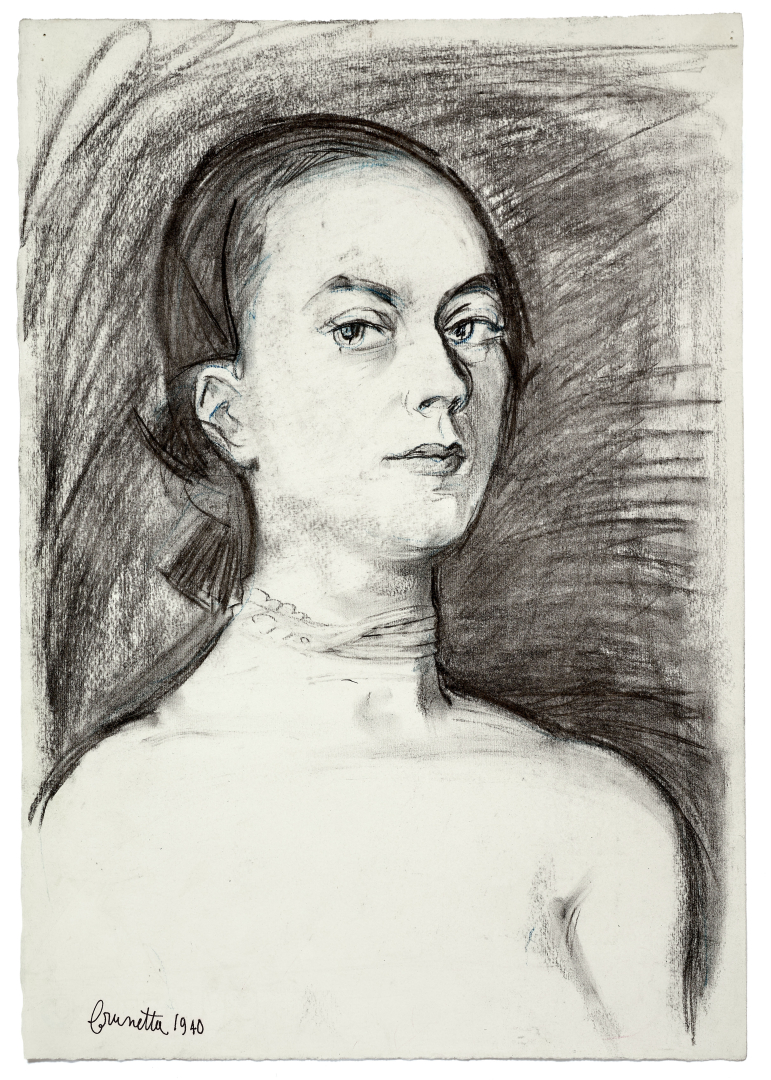 Lotto completato da: Brunetta (Brunetta Mateldi), autoritratto, 1940, carboncino su carta, 48,00 x 33,50 cm, firmato e datato al recto in basso a sinistra, al verso timbro galleria Gian Ferrari, Milano.