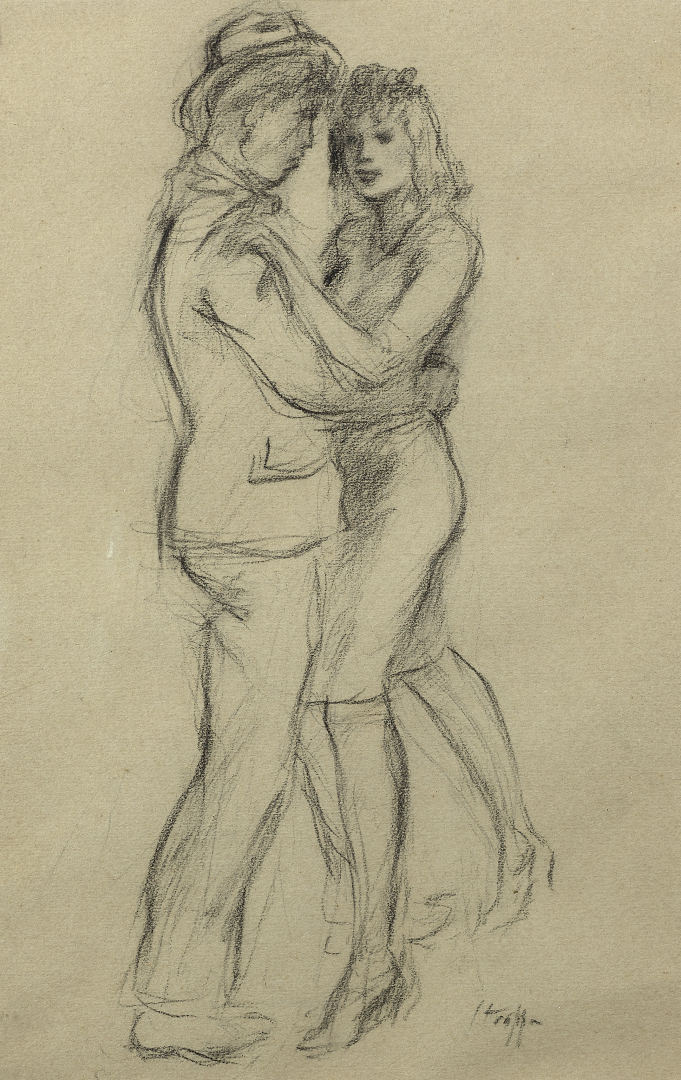 Assieme: I ballerini, carboncino su carta, 30,00 x 21,00 cm, firmato al recto in basso a destra.