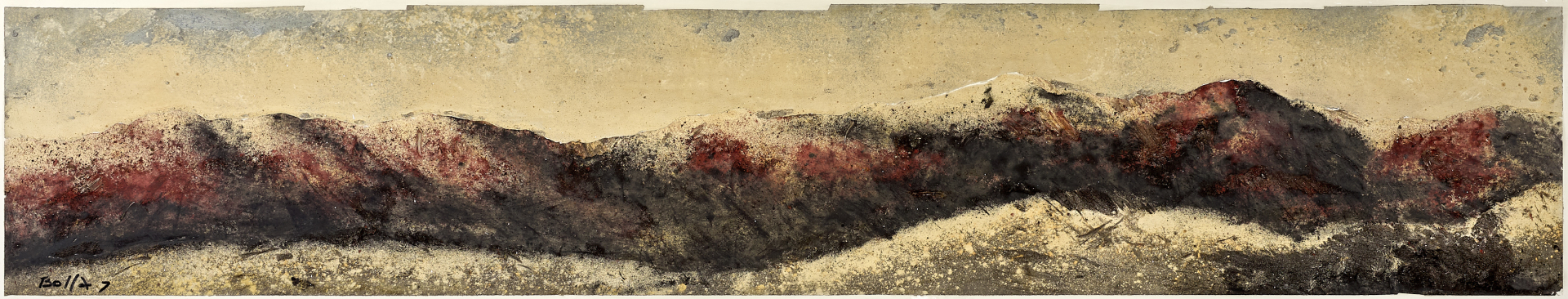 Lotto completato da: Montagne e Matasse, 1972, tecnica mista su tavola, 30,00 x 129,00 cm, firmato e datato al recto in basso a sinistra.