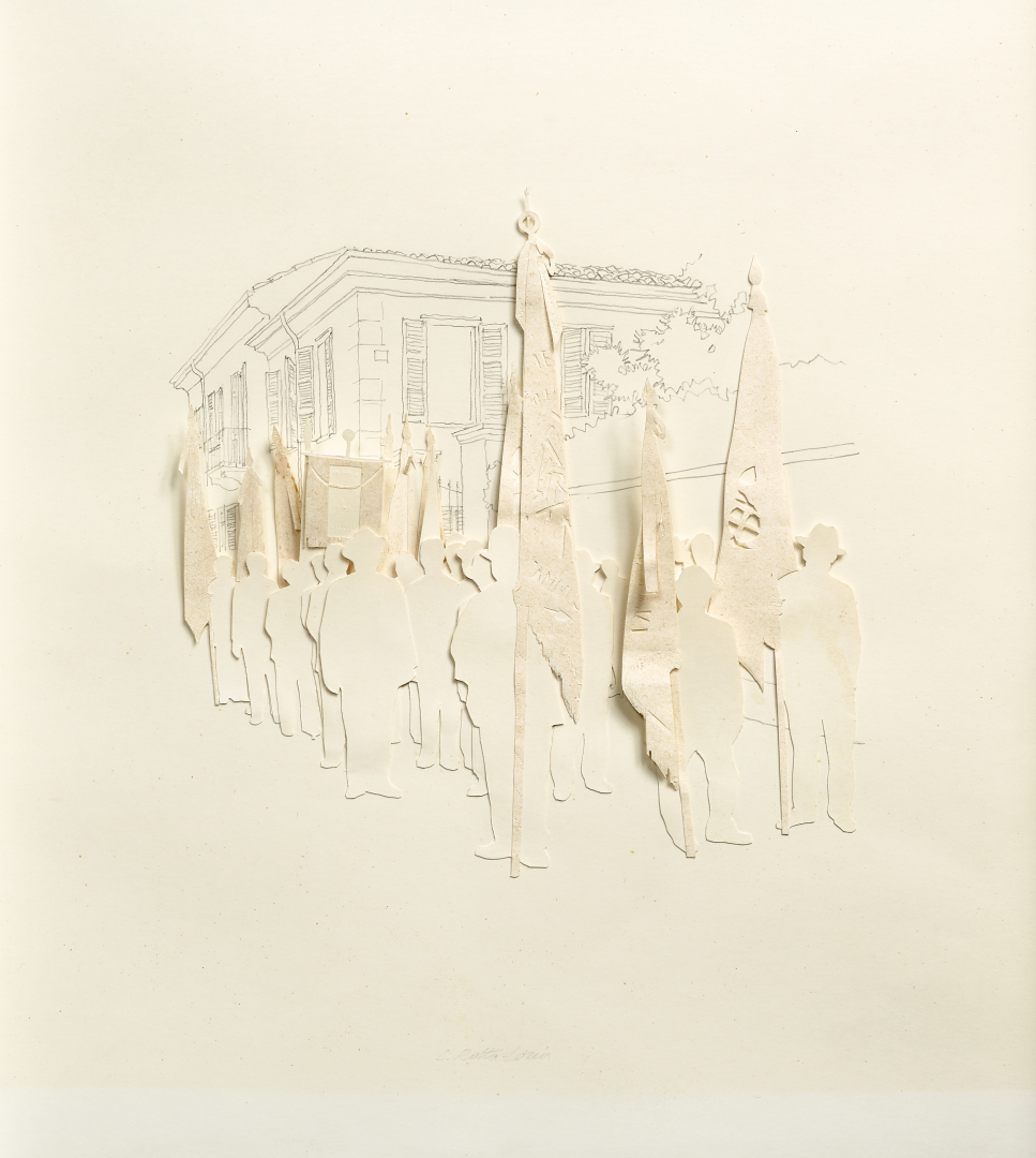 Tecnica mista su carta e collage.