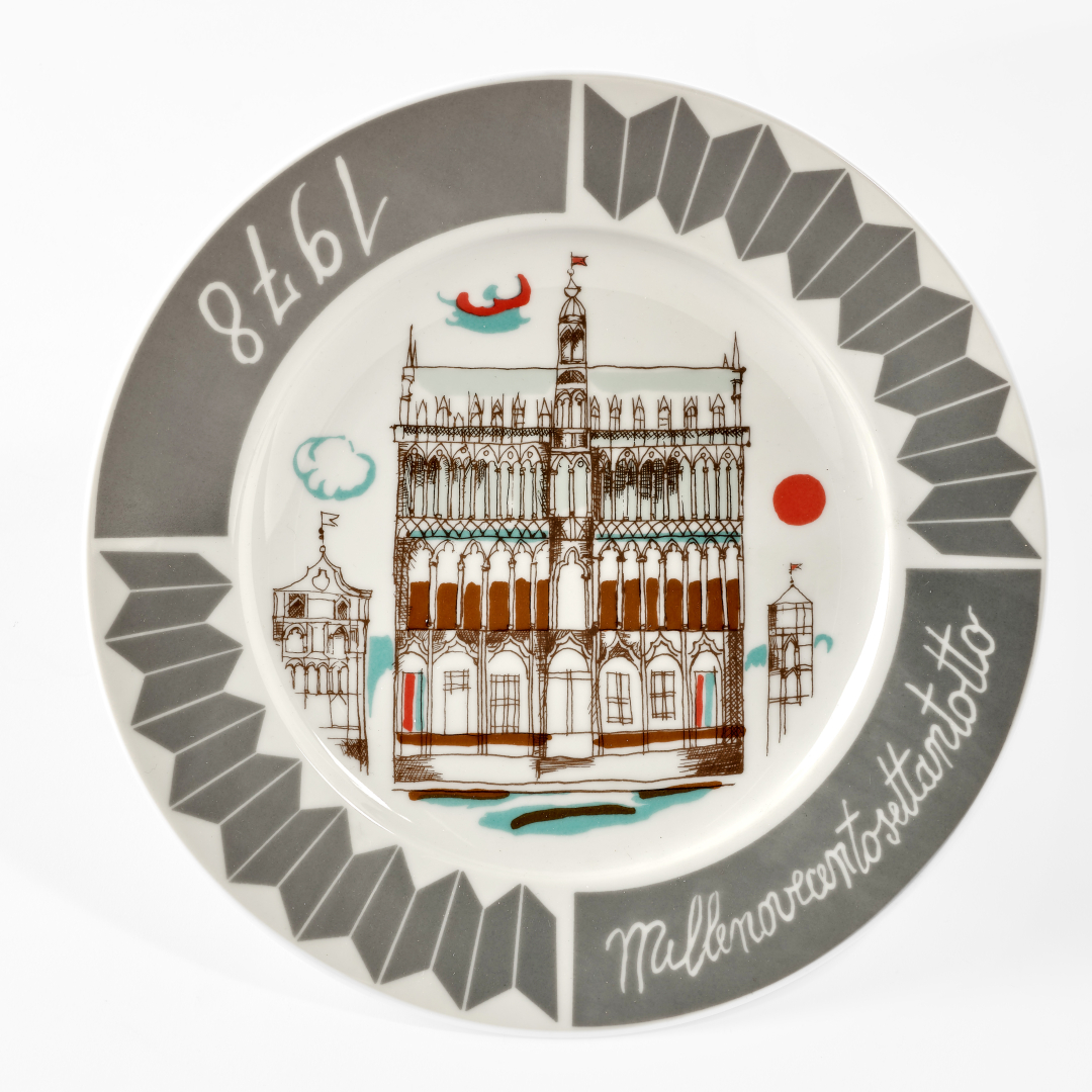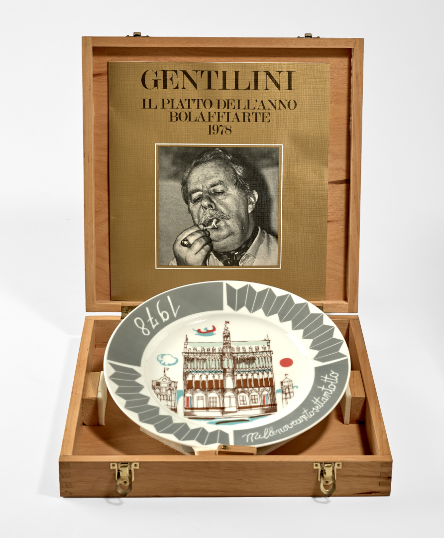 Franco Gentilini, Piatto dell'anno, 1978, ceramica serigrafata, ed. 11/500, 25,00 x 25,00 cm, datato al recto, firmato al verso.