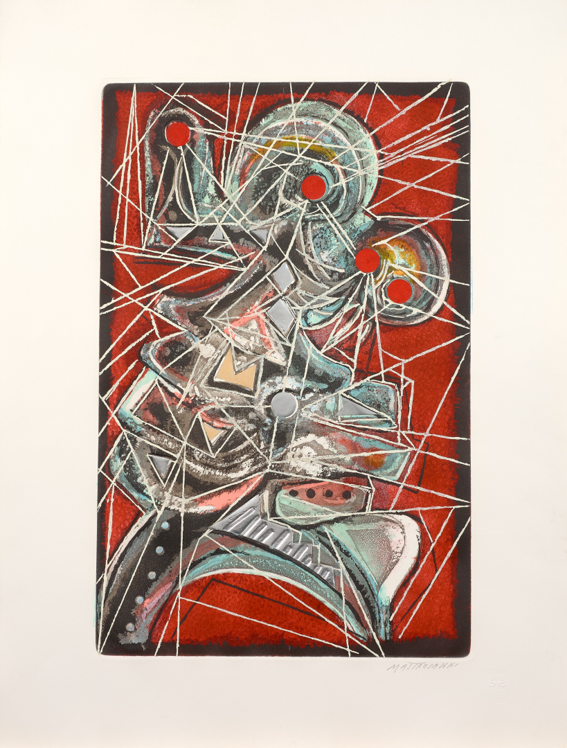 Assieme: Senza titolo, acquaforte materica con sbalzi ed inseriti in argento, ed. P.A., 79,00 x 59,00 cm, firmato al recto in basso a destra, non numerato, e timbro a secco GG edizioni d'Arte.