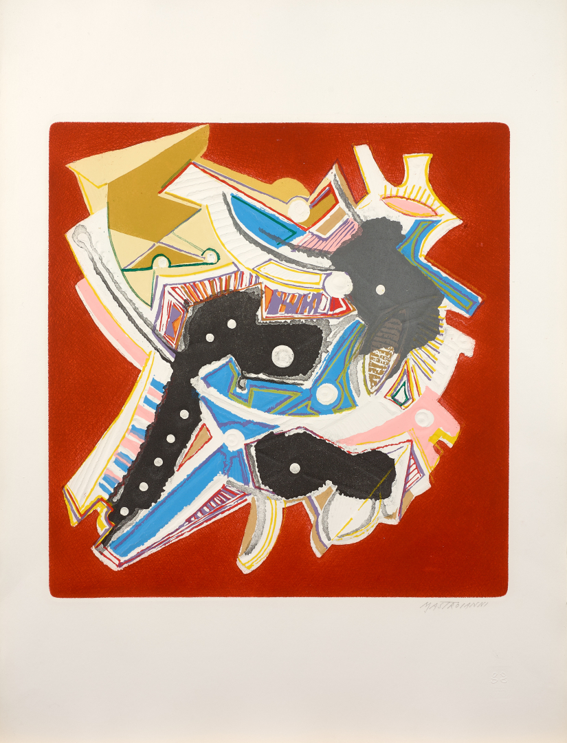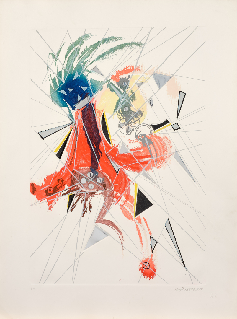 Lotto completato da: Senza titolo, acquaforte materica con sbalzi, ed. P.A., 79,00 x 59,00 cm, firmato al recto in basso a destra, non numerato e timbro a secco GG edizioni d'Arte.