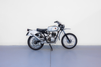 An original interpretation of an off-road lightweight motorcycle from the historic Milanese brand Guazzoni. Powered by a lively single-cylinder two-stroke engine and equipped with