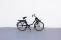 Motorized bicycle with roller transmission and front-positioned engine, originally painted white, it used to circulate within the walls of Vatican City. A general check is recommended before use.
