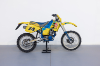 Competition motorcycle produced by the famous Swedish brand Husqvarna, equipped with a 250cc single-cylinder 2-stroke engine, reed valve intake,