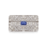 cut diamonds weighing approx. 3.50 ct and rectangular modified step-cut sapphire weighing approx. 3.00 ct.