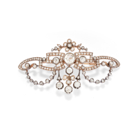 in silver and gold designed as a garland, with round brilliant-cut, Old Mine-cut, and rose-cut diamonds, weighing approx. 5,00 ct.. Late XIX century.