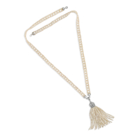 suspending a tassel pendant with white gold elements and rose-cut diamonds.