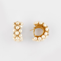designed as yellow gold half circles with button pearls and small diamonds. Circa 1980.