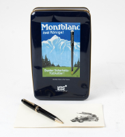 Accessories: tin box, booklet with blank guarantee, Montblanc writing paper.