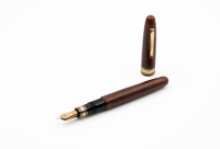 Briar body and gold laminated accents, two-tone signed 18K gold nib, size M, piston filler.