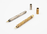 LOT OF TWO GOLD AND SILVER FOUNTAIN PENS, PRESUMABLY MABIE TODD
