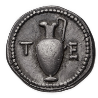 Terone - Tetrobolo databile al periodo 424-422 a.C. - Diritto: Oinochoe - Rovescio: quadrato quadripartito in incuso - gr. 2,47 - Patina di medagliere, SPL - Da un appunto del collezionista, acquistata privatamente dalla NAC (Zurigo 2003)