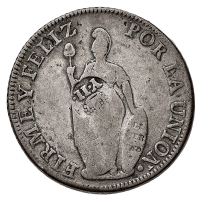 Repubblica (dal 1821) - 4 Reales 1861 - Zecca: Guatemala City - Diritto: testa di Rafael Carrera a destra - Rovescio: valore e data entro due rami di palma - gr. 0,83 - q.SPL