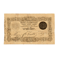 Banca Nazionale negli Stati Sardi - Biglietto da 20 Lire - Creazione del 25.7.1866 - Molto raro - Fori di spillatura e pieghe, BB