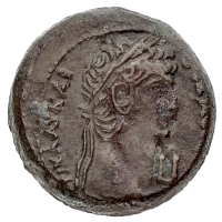 Diobolo - Zecca: Alessandria d'Egitto - Diritto: testa laureata dell'Imperatore a destra - Rovescio: quattro spighe di grano con al centro un caduceo - gr. 9,00 - q.SPL - Corredata dal cartellino di Oscar Rinaldi