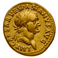 Aureo databile agli anni 72-73 d.C. - Zecca: Roma - Diritto: testa laureata dell'Imperatore a destra - Rovescio: Nettuno stante a sinistra col piede destro su un globo, tiene un acrostolium con la mano destra e un lungo scettro verticale con la sinistra - gr. 7,33 - read all