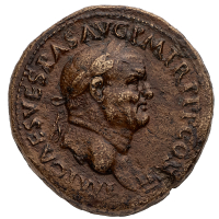 Sesterzio databile al 71 d.C. - Zecca: Roma - Diritto: testa laureata dell'Imperatore a destra - Rovescio: S C con al centro Marte in cammino verso sinistra che tiene una Vittoria con la mano destra e un trofeo con la sinistra - gr. 27,81 - Migliore di BB - Proveniente read all