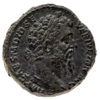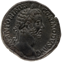 Sesterzio databile al 189 d.C. - Zecca: Roma - Diritto: testa laureata dell'Imperatore a destra - Rovescio: Minerva stante a sinistra, tiene una Vittoria con la mano destra e una lancia con la sinistra; nel campo a destra un trofeo d'armi - gr. 25,89 - BB