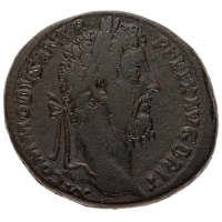 Sesterzio al nome e con l'effigie di Lucilla, moglie dell'Imperatore - Zecca: Roma - Diritto: busto drappeggiato e diademato di Lucilla a destra - Rovescio: Vesta stante a sinistra con un'ara si suoi piedi, tiene con la mano destra un simpulum e con la sinistra un read all