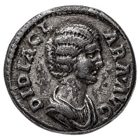 Denario al nome e con l'effigie di Didia Clara, figlia dell'Imperatore - Zecca: Roma - Diritto: busto drappeggiato di Didia Clara a destra - Rovescio: l'Hilaritas stante a sinistra tiene un ramo di palma con la mano destra e un cornucopia con la sinistra - gr. 3,68 - read all