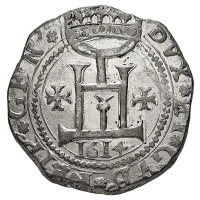 Governo dei Dogi Biennali (1528-1797) - Mezzo Scudo 1614 - Diritto: castello sovrastato dalla corona e con due croci ai lati - Rovescio: croce patente accantonata da quattro stelle - gr. 17,34 - Sigle MC - Non comune - SPL