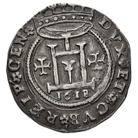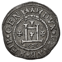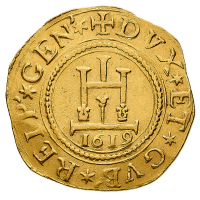 Governo dei Dogi Biennali (1528-1797) - Da 2 Doppie 1619 - Diritto: castello con data sottostante - Rovescio: croce ornata - gr. 13,37 - Rara - Sigle GF - Ampio modulo, SPL