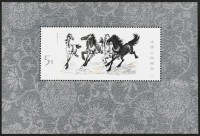 Overseas China 1878 - Horses - The series in blocks of ten examples, lower right corner of sheet - 10 sheets joined (Yv. n. 2140/49+BF14) € 1500
