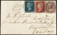 Europe and Overseas Destinations 1860 - India - Letter dated 18 April from London to Bombay with "tricolor" franking of 2 p. blue + 1 p. red + 6 p. violet - Rare and well preserved - Cert. Brandon - Signature A.G.Bolaffi (Yv. n. 4+14+19)read all
