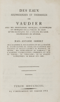 [Acque di Valdieri ]. Giobert, Giovanni Antonio. Des Eaux Sulphureuses et Thermales de Vaudier. Torino, Giacomo Fea, 1793.
