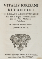[Matematica - Galileo]. Giordani, Vitale. De componendis gravium momentis dissertatio. Roma, Angelo Bernabò, 1687.