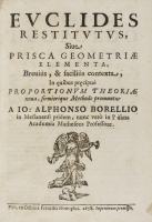 [Matematica]. Borelli, Giovanni Alfonso. Euclides restitutus, sive prisca geometriae elementa, breviùs, & faciliùs contexta. Pisa, Francesco Onofri, 1658.