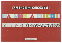 [Libro d'artista]. Da uno a dieci di Alighiero Boetti, stampato a Milano da Emme Edizioni nel 1980, contenente venti tavole sciolte in cartoncino (240 x 360 mm) entro una cartella in cartonato rosso a stampa. G. Maffei, Il libro d'artista, Milano, 2003, pagina 55.