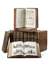 In 2° (305 x 205mm). Antiporta calcografica allegorica incisa da Francesco Curti, fregio xilografico al frontespizio, testatine e iniziali xilografiche, 80 tavole calcografiche, cartiglio a