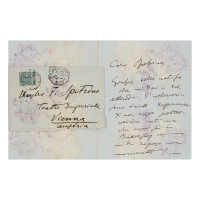 Puccini, Giacomo. Lettera autografa firmata, datata "Torre del Lago 21.11.903", 2 pagine in 8°. Documento che mette in luce lo stato d'animo di Puccini durante l'intensa e lunga composizione della Madama Butterfly e pochi giorni prima della rappresentazione a Vienna read all