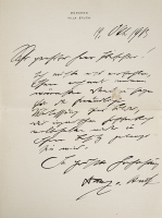Von Stuck, Franz. Breve ma bella lettera autografa firmata del grande artista tedesco su carta intestata "München Villa Stuck", 1 pagina in 8°, datata "19.Okt. 1913".