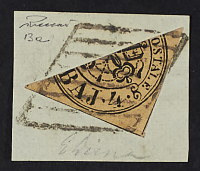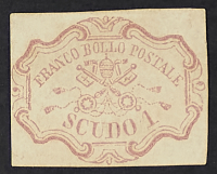 1852 - Piccolo insieme comprendente un 7 baj. usato e tre frazionati su frammento - Firme G. Bolaffi, E. Diena e En. D.